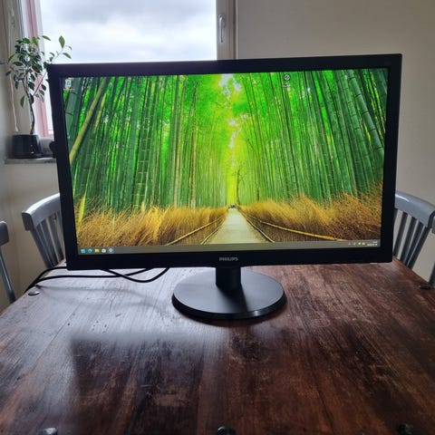 Samsung S27F350 bildskärm med 27 tum skärmstorlek i svart utförande. Skärmen är utrustad med HDMI‑anslutning enligt märkningen på baksidan. Passar för användning till datorarbete, studier och underhållning där en större skärmyta önskas.