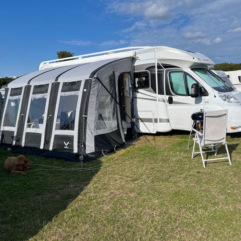Uppblåsbart tält, Ace AIR 400 (XL(265-280) I nyskick, använt 4 gånger! Inkl. pump, gardiner,