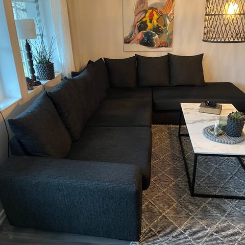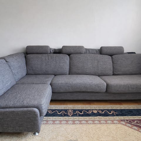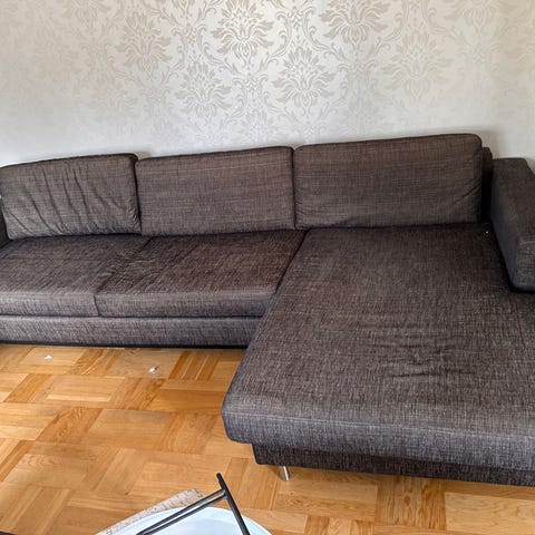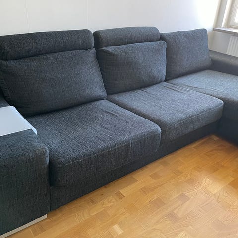 Mörkgrå soffa med divan säljes.