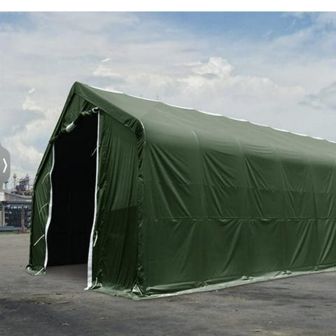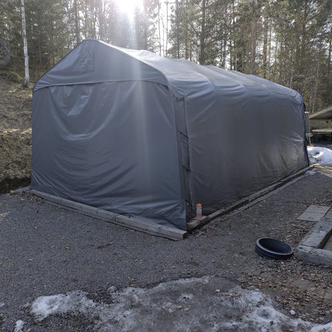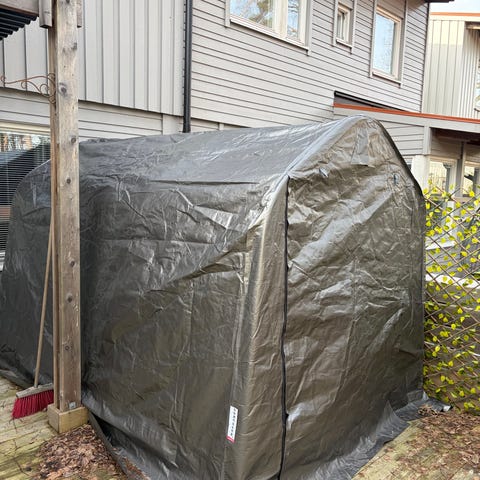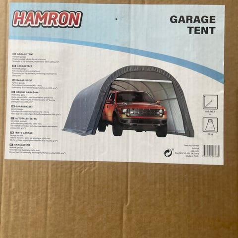Tält är ca 3 år och är ner monterade och ligger på en pall. Om man vill fins det plats att vika ut tältet för inspektion av duken