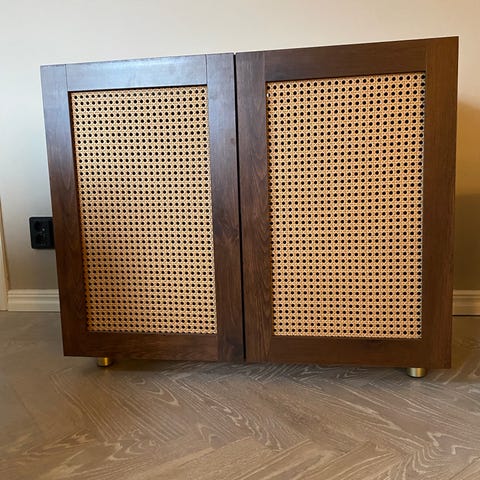 Säljer två snygga och moderna sideboards i boho/retro-stil med rottingdörrar. Perfekta som förvaring i vardagsrum, matsal eller hall.