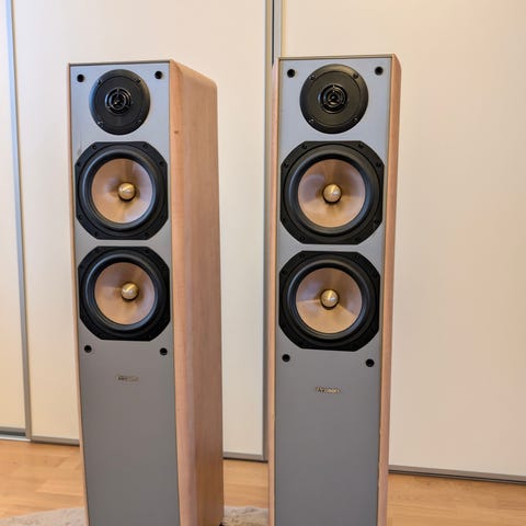Ett par större golvhögtalare. Leverans kan ordnas i närområde.