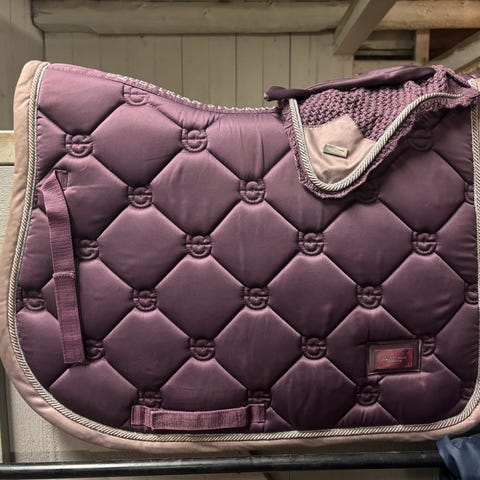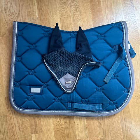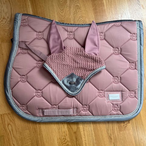 Brunt Equestrian Stockholm schabrak & huva med röd kant i strl full hopp, 500kr.