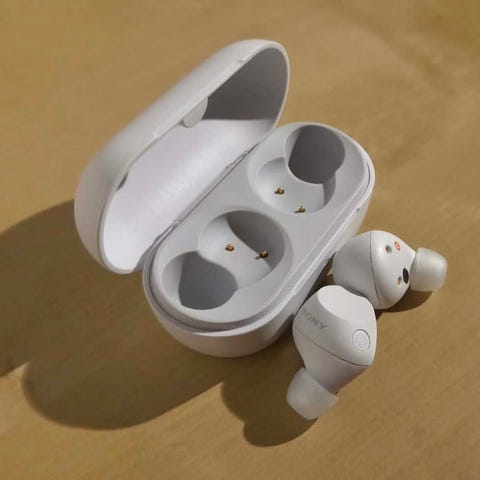 Happy Plugs trådlösa in-ear hörlurar i vit färg. Modellen levereras med ett vitt laddningsetui med lock och laddningsport på baksidan. Hörlurarna är helt trådlösa och placeras i etuiet för laddning och förvaring. Passar för användning med kompatibla mobiltelefoner, surfplattor och andra enheter som stödjer trådlös ljuduppspelning via Bluetooth eller liknande teknik. I mycket gott skick, lurarna är som nya. Enda skavanken är en fläck på etuiet som inte går att få bort. Använda bara några få gånger.