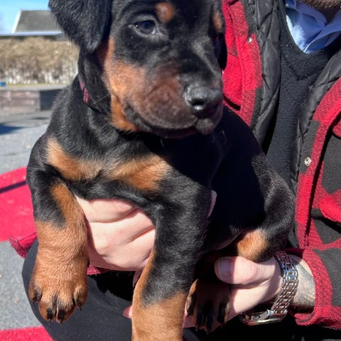 Valparna Àr en blandning av dobermann, herdehund, rottweiler och svart schÀfer.