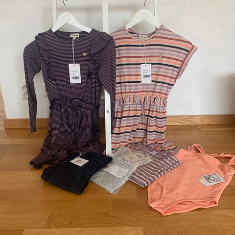 Newbie klänning i storlek 104, men skulle säga 98-104. Den blå är lite lättare/tunnare och den röda har en underklänning. Perfekt för olika typer av sommarväder och tillfällen :)