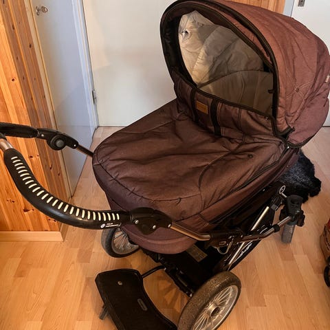Liggdel för små bebisar, kompletteras med en mjuklift för extra smidighet om så önskas. Sittdel för större barn, finns en åkpåse för sköna vinterpromenader.