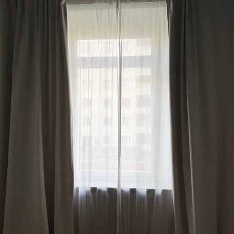 Gardinerna har bara testats att hängas upp, men passade tyvärr inte i rummet.