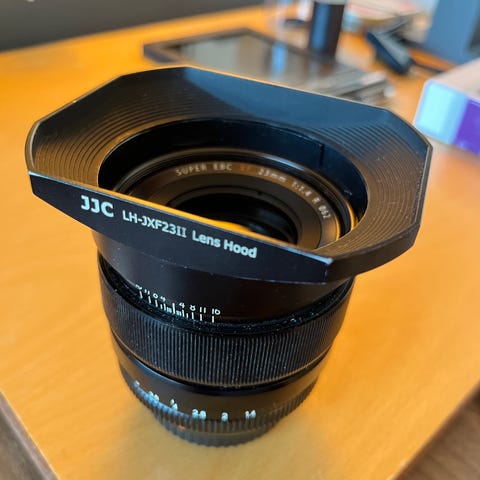 Fast, ljusstark vidvinkelobjektiv med brännvidd 23 mm (motsvarar 35mm på kameror med 35mm sensor) och största bländare f/1,4. Utrustat med bländarring och manuell fokusring. Passar Fujifilm X-seriens kameror med X-fattning.