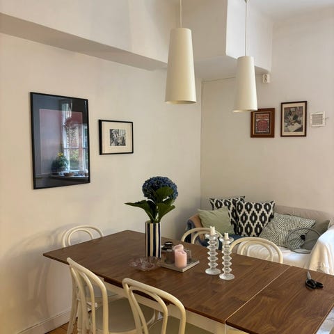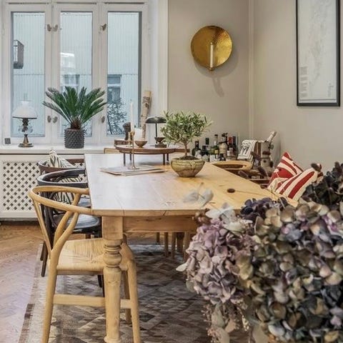 Säljes pga flytt: världens vackraste matbord som vi alltid får komplimanger för. Skivan är gjord av en gammal robust trädörr.
