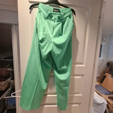 NA-KD byxor för dam i storlek 42. Byxorna är gröna och har ett utsvängda ben enligt bilderna. Passar till vardag eller enklare festliga tillfällen. Matcha med kavaj eller skjorta och accessoarer så det blir fint!😃
