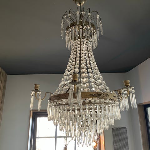 Retro kristallkrona i mässing – vintage taklampa
