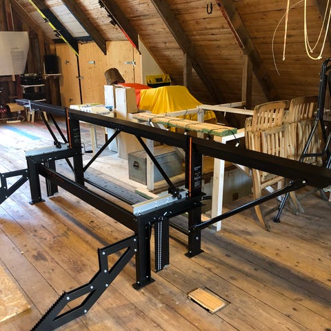 Solosåg M6 med förlängning. Går att såga 5,5 meter med. Motorsåg Stihl 064 med släde och Elsåg E5000.