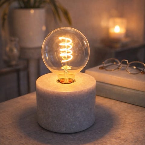 Bordslampa med medföljande dekorativ glödlampa.