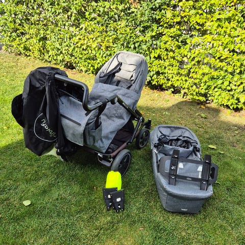 Till vagnen följer med modellanpassat regnskydd, samt tvättbar iläggsdyna och enklare insekts-/solskydd