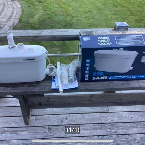 SFA Saniaccess 3 avloppspump i vit plast. Pumpen är avsedd för anslutning till toalett och andra sanitetsenheter för malning och pumpning av avloppsvatten. Enheten har flera anslutningar för in- och utlopp samt elanslutning (ej stickkontakt) enligt märkplåt. Lämplig för installation där avloppsvatten behöver pumpas till avloppsstam eller avlopp på högre nivå.