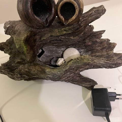 Säljer en snygg liten inomhusfontän som skapar lugn och trivsel i hemmet. Fontänen har ett vattenfallsliknande flöde som ger en mysig stämning. Perfekt på skrivbordet, i vardagsrummet eller på en hylla.