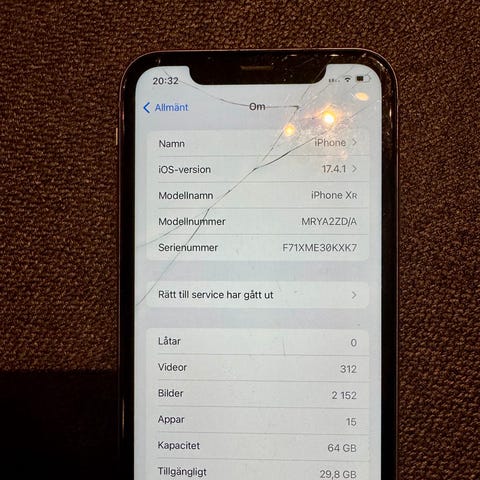 Apple iPhone Xs Max mobiltelefon med 512 GB lagringsutrymme. Telefonen visas här i vit färg med glasbaksida och skärm med sensorpanel (notch). Enheten kör iOS 17.4.1 enligt bilderna. Batterihälsan i inställningarna visar en maximal kapacitet på 81 %. Lämplig för användning med appar, surf, media och lagring av stora mängder bilder, video och andra filer tack vare den höga lagringskapaciteten.