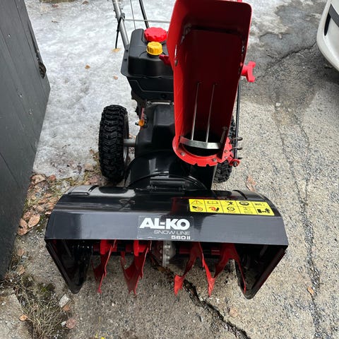 Detta är en snöslunga för större ytor och hårt arbete lättstartad och går bra. Den är gammal men det är ett välkänt märke och en bra slitvarg. Den är bara att använda på en gång.