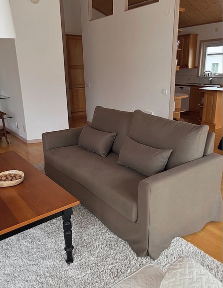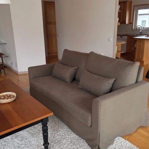 Soffans totala längd är 270 cm. Sitthöjd: 38 cm och ryggstöd 75 cm.