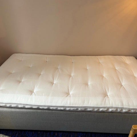 Dubbelfjädrad resårbotten 105x200 cm med 5 komfortzoner, som ger ett precist, optimalt stöd. Överst pocketfjädrar 246/m², vadderade med polyeterskum. I botten bonellfjädrar 150/m². Inkl. 5 cm tjock bäddmadrass.Tvättbart överdrag.
