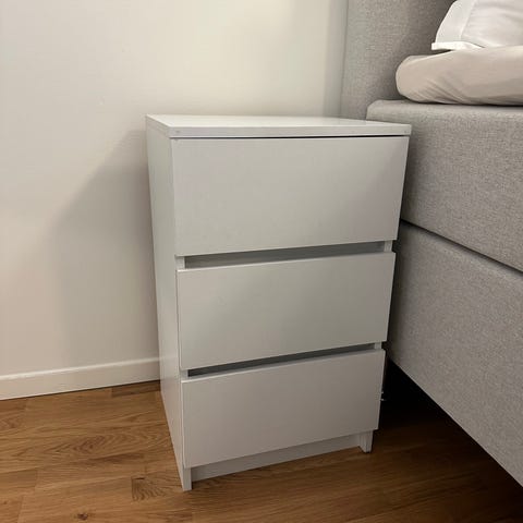 På grund av flytt måste vi tyvärr bli av med dessa tre fina vita sängbord/byråer. Bil har vi inte så ni hämtar upp själva dessa vid inköp. Priset på ikea 399 :- styck.