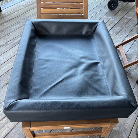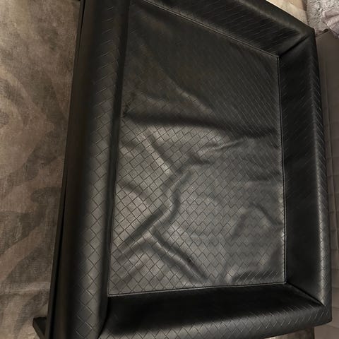 Bia Bed hundbädd i svart fuskläder med upphöjda ergonomiska kanter. Bädden är rektangulär och passar för hund. Medföljer gör en dubbelsidig filt från Me&I med grön insida och mönstrad utsida. Produkten är avsedd som viloplats för hund i hemmet eller i andra inomhusmiljöer.