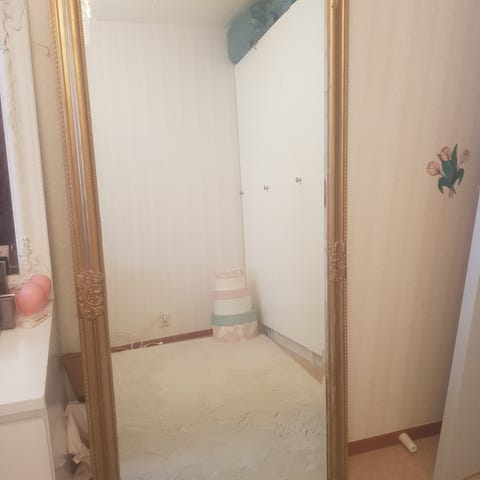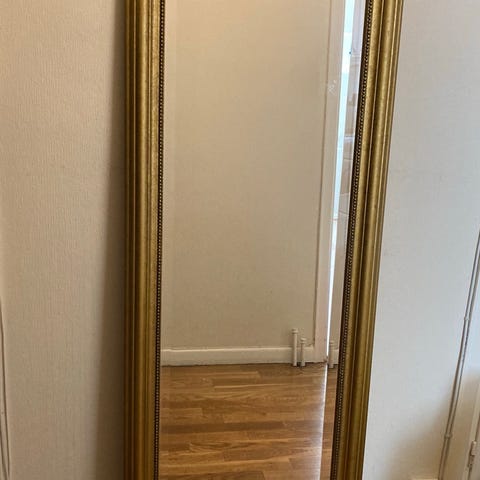 Antik guldfärgad träspegel. Spegel av mycket hög kvalitet. Tung träram som är målad guld. Utmärkt skick.