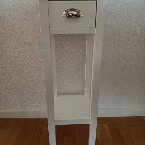Vitmålad. 25 cm hög. För blockljus eller värmeljus. Hämtas i Salabackar Uppsala