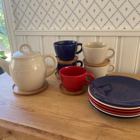 Fin the service från Höganäs 6 koppar, sockerskål, mjölkanna och assietter säljes för 700:- Hämtas i Stockholm centralt nära buss o T-bana