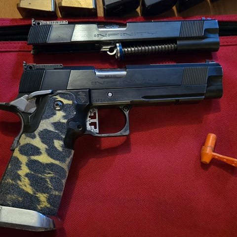 Trycket klarar 1360 gram, så det även går att skjuta nationellt i vapengrupp A. Det följer med ett extra fjäderblad, om man vill laborera med lättare trycke för IPSC.