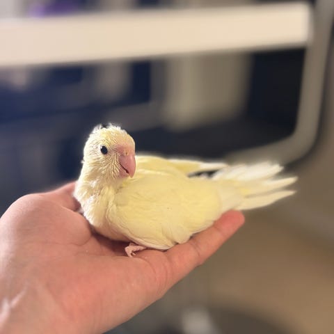 En lugn Kakariki hona på 11 månader tyckerom att flyga fritt i vardagsrummet.