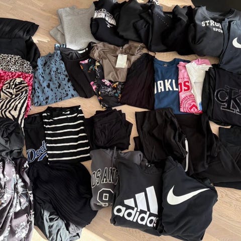 Skick: Väldigt fint skick, mängden plagg är knappt använda och några är helt nya.