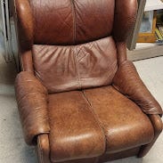 Läderfåtölj med fotpall
