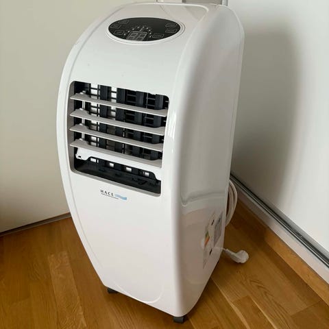 Pro Klima luftkylare med 10 liters vattentank i vit färg. Enheten har frontgaller, hjul för enkel förflyttning och vattennivåindikator på framsidan. Baksidan har filter och vattenbehållare. Ovanpå finns kontrollpanel med knappar för olika driftlägen, timer och fläkthastigheter. Luftkylaren är avsedd för inomhusbruk och kan användas för att cirkulera och kyla luft i rum. Levereras med originalkartong där det även framgår att modellen har fjärrkontrollsfunktion.