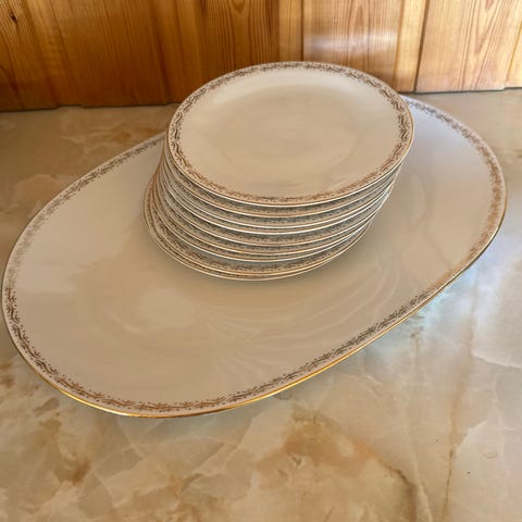 Vackert gammalt Set med porslin och karaff/kanna av märket Hackefors från 50-talet Synligt använda. Titta noggrant på bilderna.