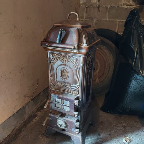 Stor kamin som värmer bra! hela kaminen är klädd med täljsten som lagrar värmen länge efter avslutad eldning.
