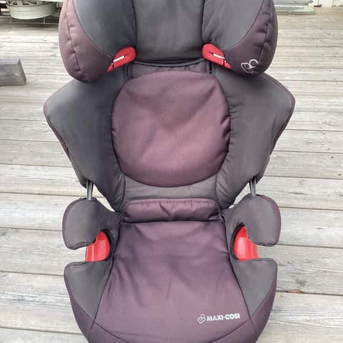 Maxi-Cosi Rodi XP bilbarnstol. Bilbarnstolen är svart med röda detaljer.