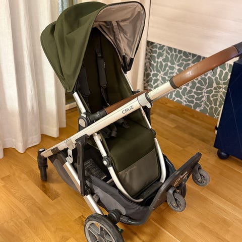 Det finns gott om förvaringsutrymme bakom vagnen för att ta med alla nödvändigheter under utflykten. Framför finns ett skydd utan dragkedjor för säkerhet och enkel åtkomst till barnet. Hjulen har snabbkoppling för smidig demontering och fästning. För ytterligare säkerhet har vagnen ett fempunktsbälte och en fotmanövrerad parkeringsbroms. Maxlasten är 47 kilo för trygg användning.