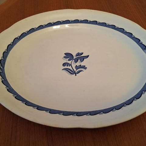 Med den här annonsen säljer jag tallrikar dekorerade med två fiskar. Bland mina andra annonser hittar du liknande tallrikar med tre fiskar samt flera föremål i samma celadon-färgskala.