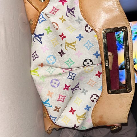 Metallbeslag: Små repor och lätt färgslitage. Har även gjort ett extra hål i remmen för att kunna justera axelremmen lite till. Se ena bilden på en tråd har gått upp i ena hörnet. Knappt märkbart och går säkert att klippa bort eller fixa till.