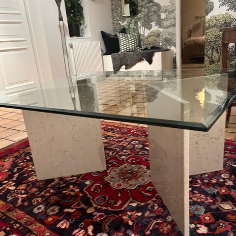 Oval bordsskiva / glasskiva med avlastningsyta/ hylla undertill.