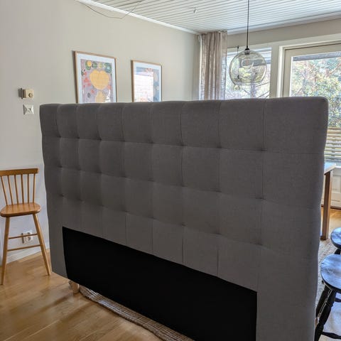 Säljer en grå stoppad sänggavel i fint skick! Säljes pga att vi bytt till annan gavel endast, så denna ska vi inte ha kvar.