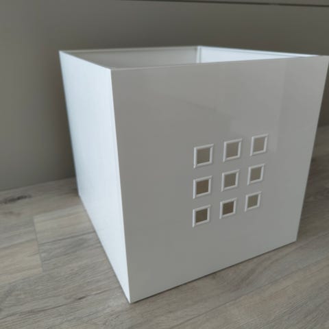 IKEA hyllsystem med öppna kubfack i vit färg. Består av flera sektioner med fyrkantiga fack som kan användas för förvaring av leksaker, böcker, lådor eller korgar. Hyllan placeras mot vägg och passar i barnrum, vardagsrum eller andra utrymmen där öppen förvaring önskas. Tillverkad i träbaserat material med slät, vit yta.
