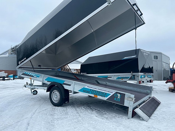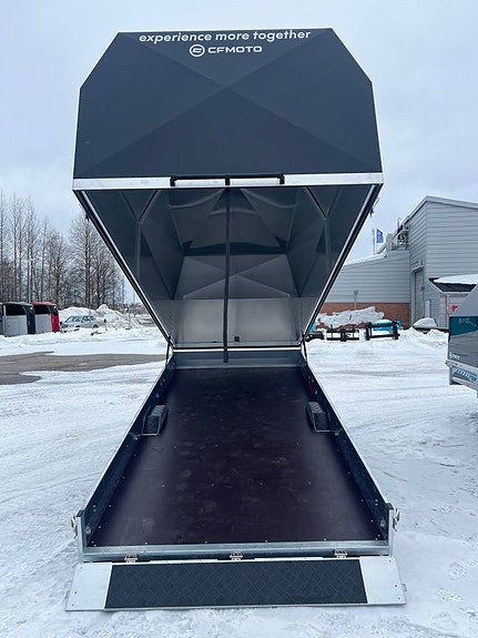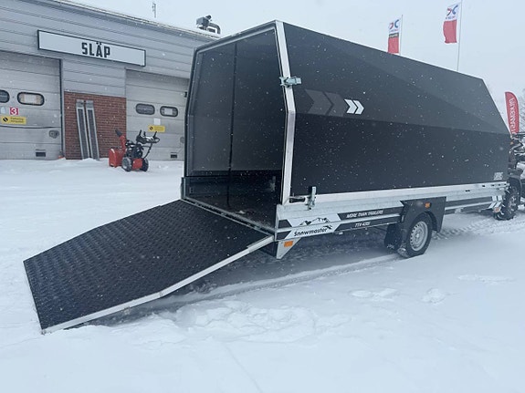 Lättdragen och smidig vagn med aluminiumkåpa för transport av tex. snöskoter och ATV.