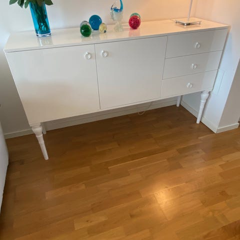 Säljer en stilren vit skänk med gott om förvaring (lådor + skåp). Passar perfekt i vardagsrum eller matsal.