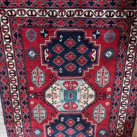 Handknuten persisk Ullmatta. Saveh från Markazi provinsen. 1950- tal Ca 111cmX165cm. Fint skick.