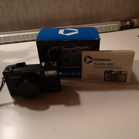 Konica FP-1 analog systemkamera i svart utförande. Kameran använder 35 mm film och har utbytbar optik. På kameran sitter ett Sigma-objektiv (zoom) med manuell fokusering och bländarring, samt motljusskydd och objektivlock. Kameran har optisk sökare, toppmonterade reglage för slutartid och filmtransport samt fäste för kamerarem. Passar för analog fotografering med 35 mm film och för den som vill arbeta manuellt med exponering och fokus. Trasig lucka till batteri.