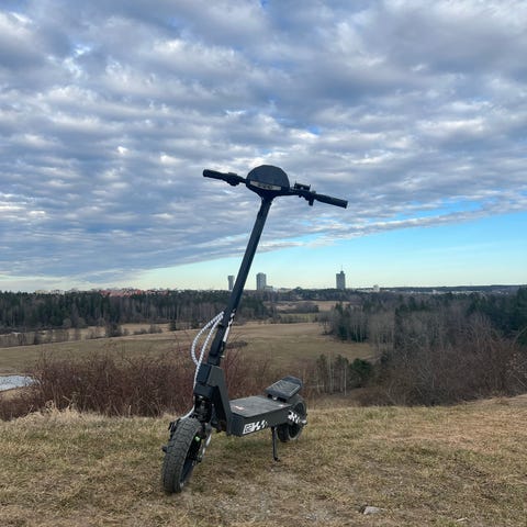 Scootern fungerar bra och är stark. Jag har kört mer än 200 km med den, men mätaren har nollställts någon gång så den exakta körsträckan vet jag tyvärr inte.