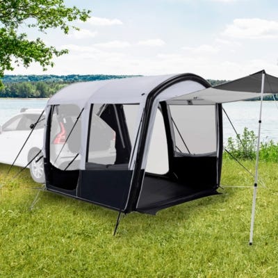 Sätts upp automatiskt med fjärrkontroll. Lätt att montera för en person.